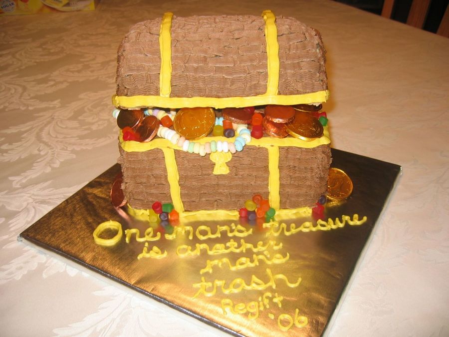 I just finished this cake for a re-gift (some of you may know it as a White Elephant) for tomorrow night. I'm so happy with the way it came out. Thanks to Boween for the idea to use Rice Krispie Treats for the lid!!