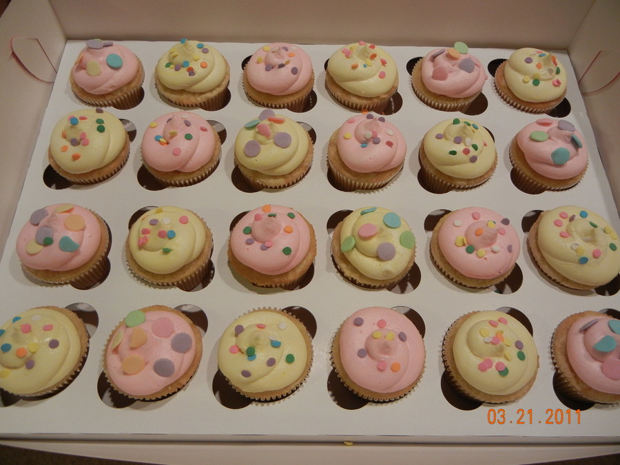 Pink and Yellow cupcakes with springy sprinkes!