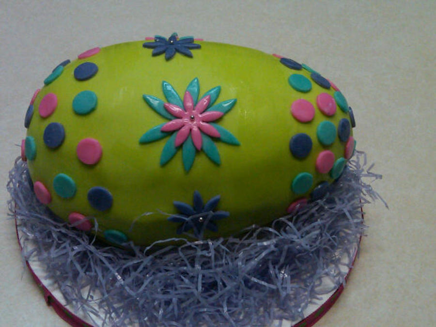 lime green carved easter egg. The cake is gluten Free with a chocolate Ganache filling.
