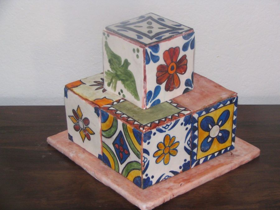 i lve this... what a creative idea. who would have ever thought of mexican tiles for a cake! great mind at work here!