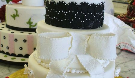 White Stenciled Bridal Shower Cake