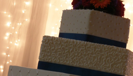 4 tiers, 6-8-10-12, all BC, ribbon at base with pearls set 1 1/2" apart. Based on a photo from a flower shop's flyer.