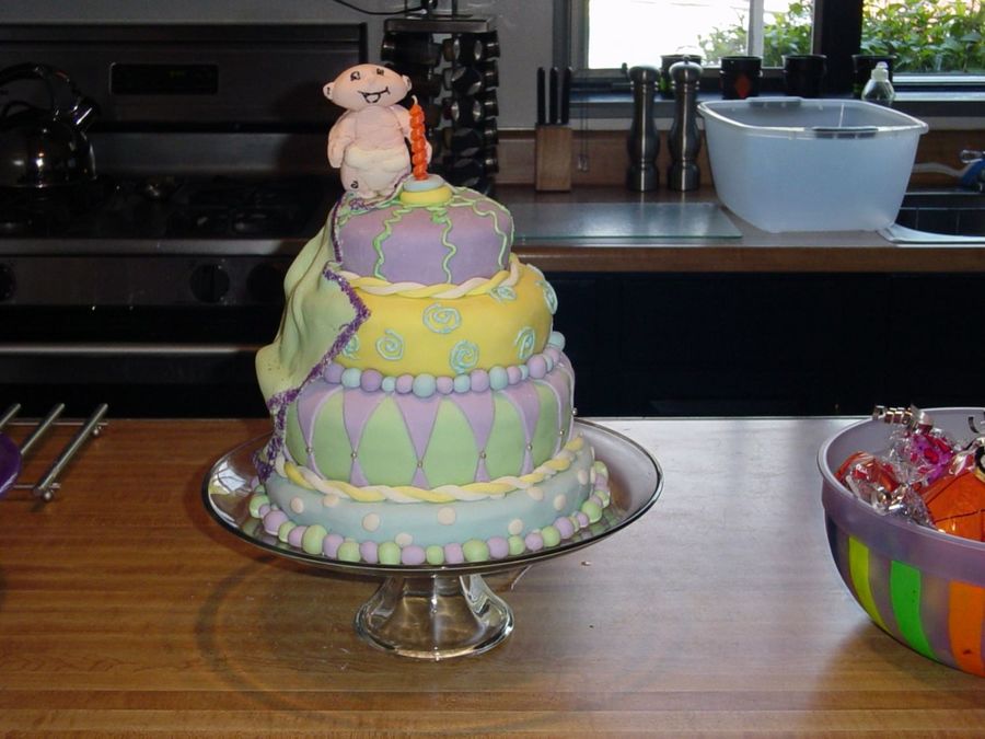 This was a yellow cake (made for my son's first Birthday) all covered with marshmallow fondant. This was my first time making a tier cake and my first experience with fondant. The candle is the only thing not made from fondant.