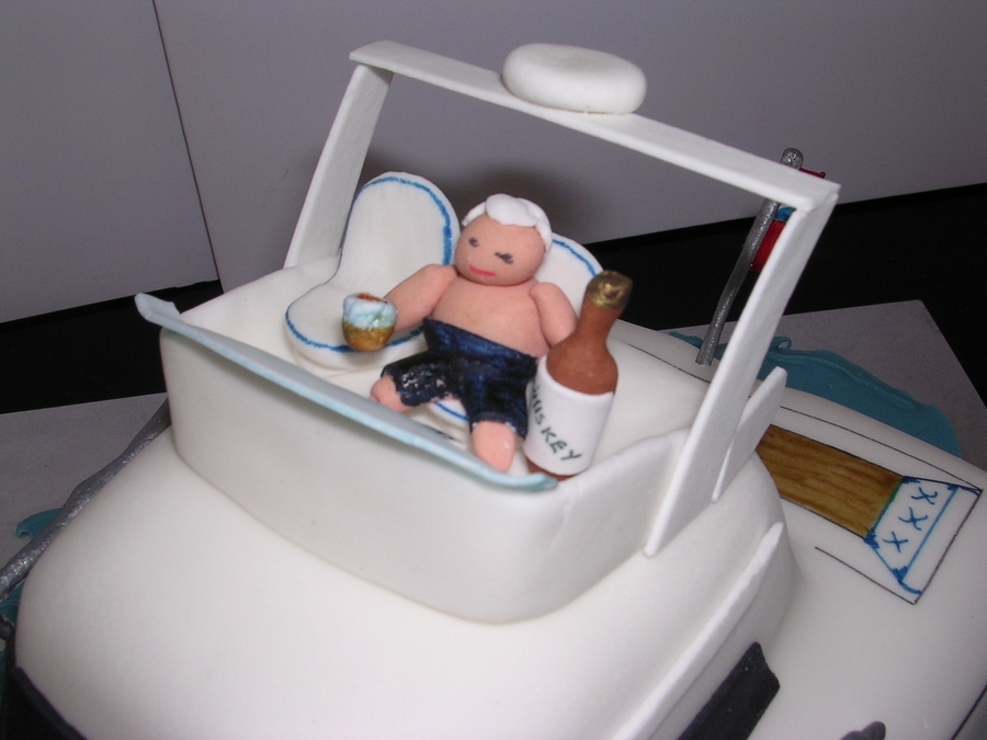 Made from a picture to replicate an actual boat, with details of a "large" man drinking whiskey.