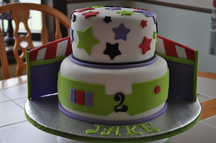 Original design by pinkicing - Jake's mom just LOVED this design and asked if I could make it into a larger cake. This is an 8inch & 6 inch. Chocolate cake filled with a strawberry infused cream cheese. So yummy! Cake is covered in fondant with fondant accents. Wings were made a few days ahead of time to allow them to firm up.