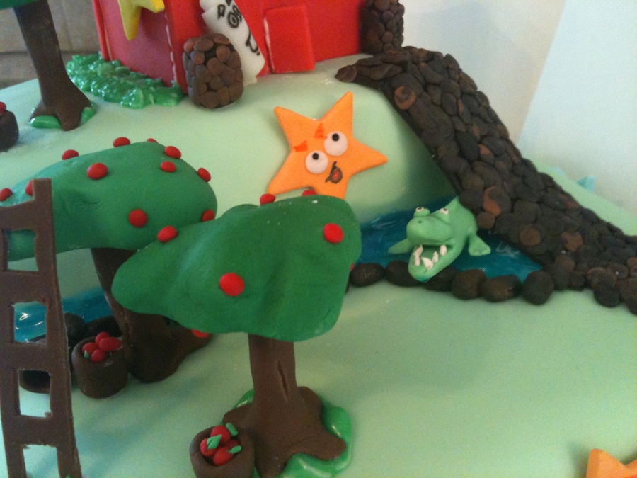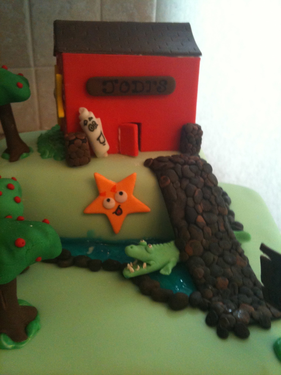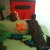 Through the Apple-ie Orchard. Over Crocodile Creek, Over the Bridge and Up the Hill to Jodi's Daycare! Ran out of space on the cake for the remaining decorations -I suppose it's better to have too many than not enough! Dora turned out amazing thanks to my partner in crime (she also did Back Pack); however, she fell apart under the pressure of putting the cake together! 8 x 8 x 4 Square Chocolate, topped 4x4x4 Peanut Butter Cake. First time trying Peanut Butter Recipe - AMAZING!