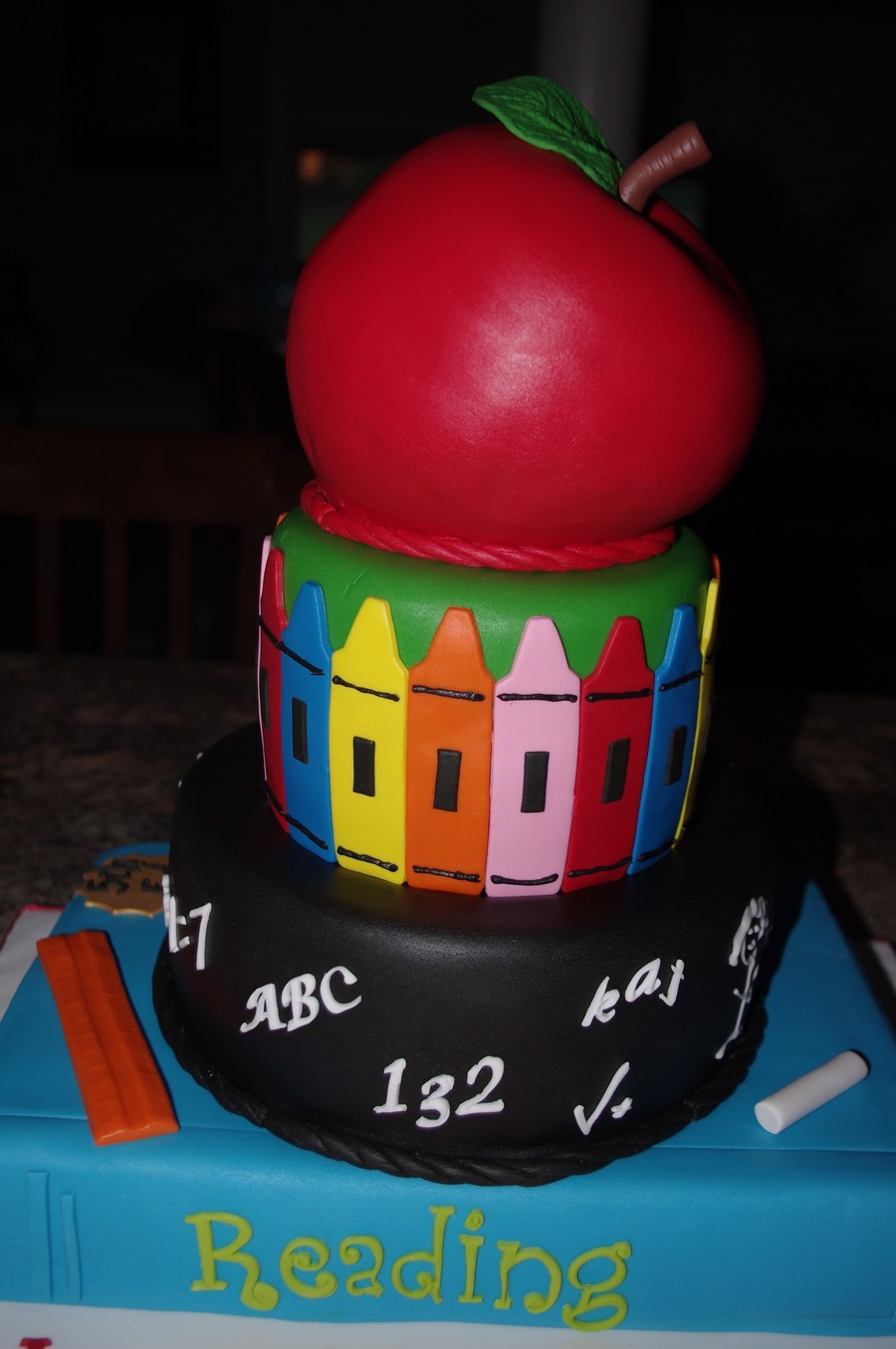 I made this cake for teacher appreciation week for his school. Every layer was a different kind of cake.