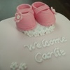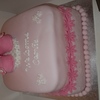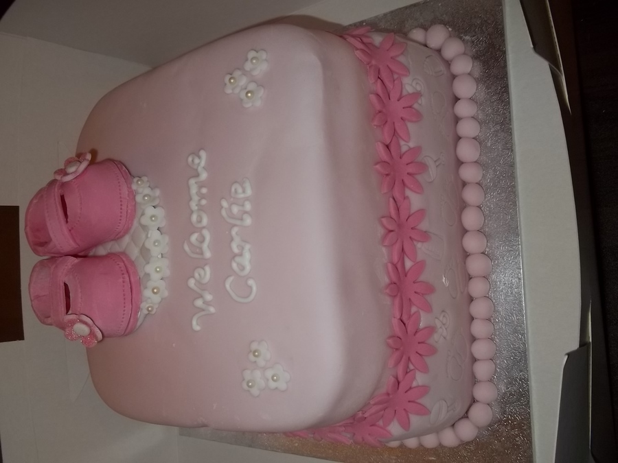 2 tier cake chocolate biscuit cake on bottom covered in ganache and fondant carrot cake filled ith cream cheese icing on top covered in fondant also.