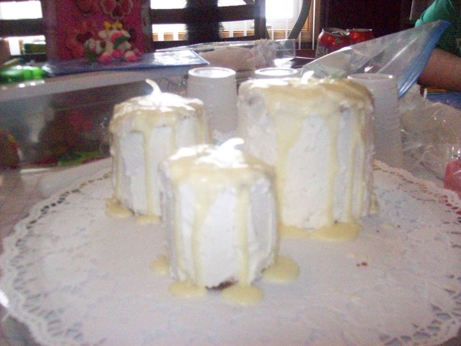 pound cake with icing and melted white chocolate