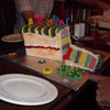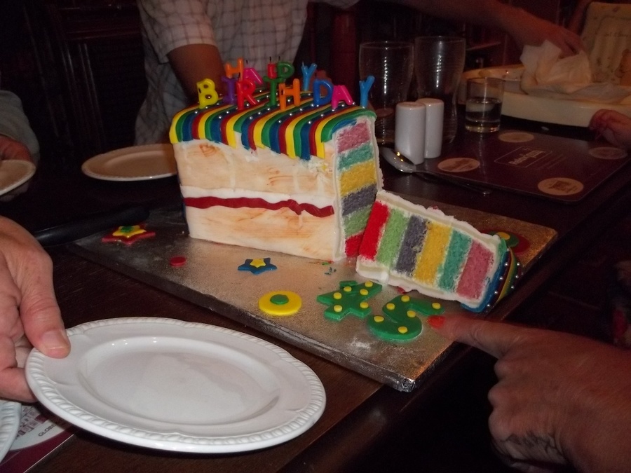 Even though she was 45 she wanted a circus coloured cake, and chose the 'piece of cake' cake. Loved doing it, and she loved it. Included photos of what it looked like once cut!!! She wanted bright, so bright she got!!!!