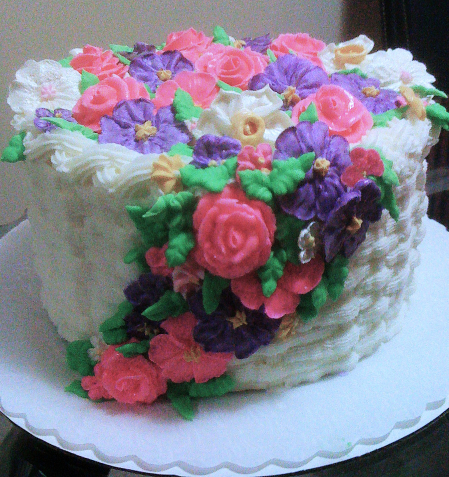This was the cake I made in my final class of Wilton course 2. I haven't finished it because we ran out of time : ) Don't know why the buttercream looks yellow on the picture with the rope border. The last picture is the finished cake I thought the colors were a little dull so I used vodka & luster duster to enhance it.