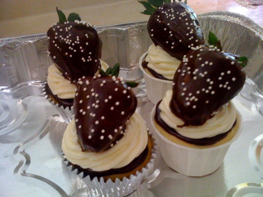 (test run) Champagne cupcakes w/ strawberry filling, chocolate ganache & champagne buttercream