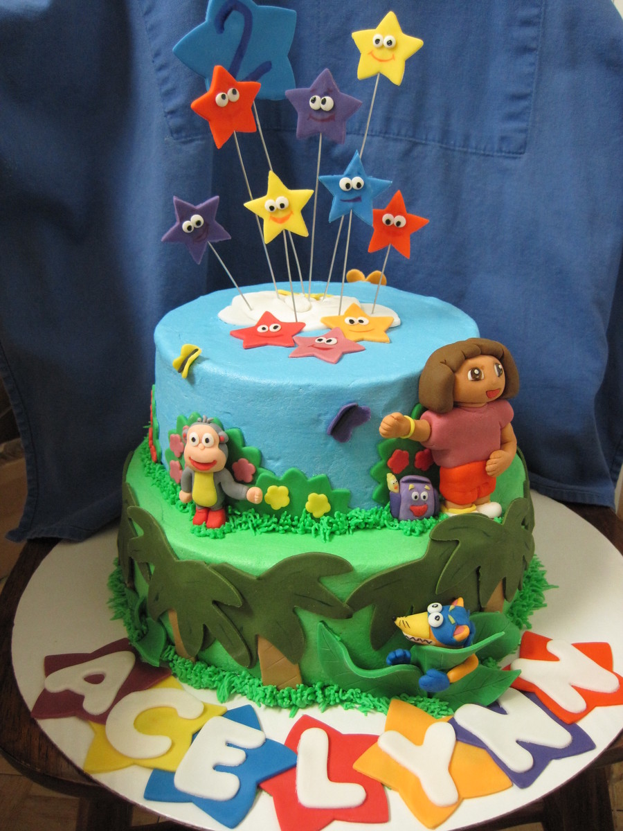 Dora Birthday Cake Start at the dark forest. Climb to the butterfly garden. Then up to the celebration.