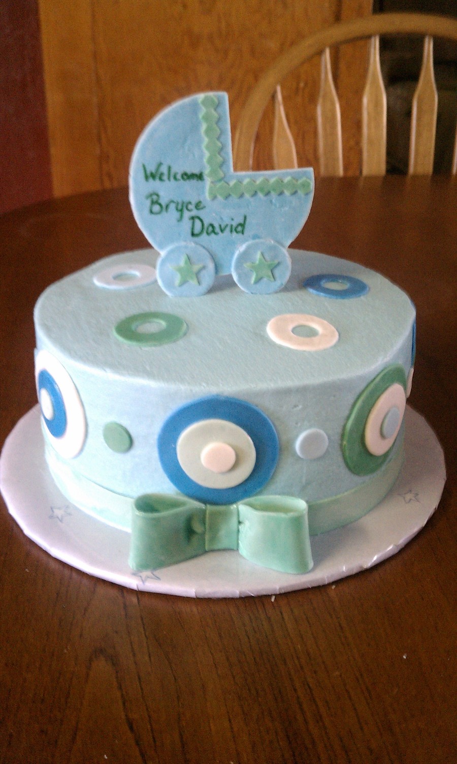WASC cake with chocolate chip cookie dough filling. bow, carriage and trim are gumpaste, circles are MMF. TFL!!