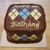 This is an orange creamsicle cake with chocolate buttercream. The argyle is done in fondant. TFL!