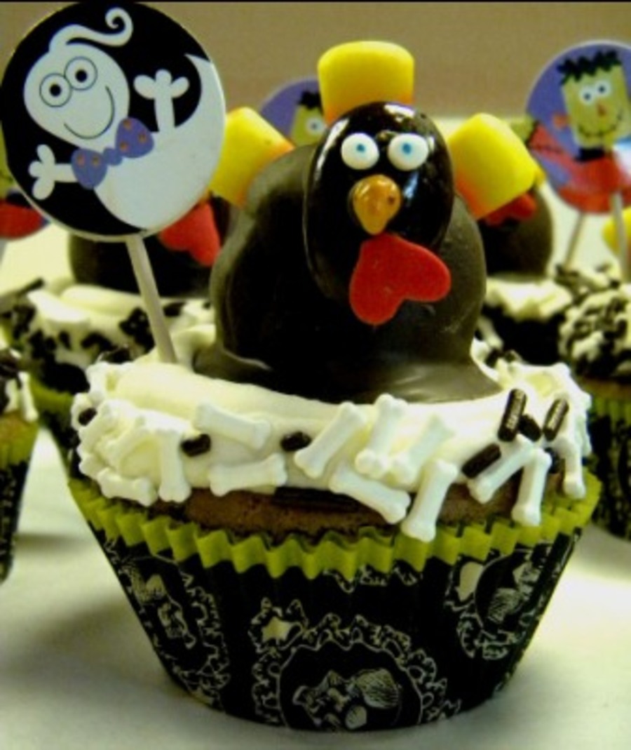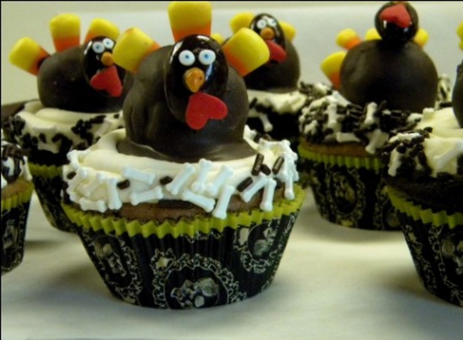 These were for a birthday that fell between Halloween and Thanksgiving--the turkeys on each cupcake are cake balls.