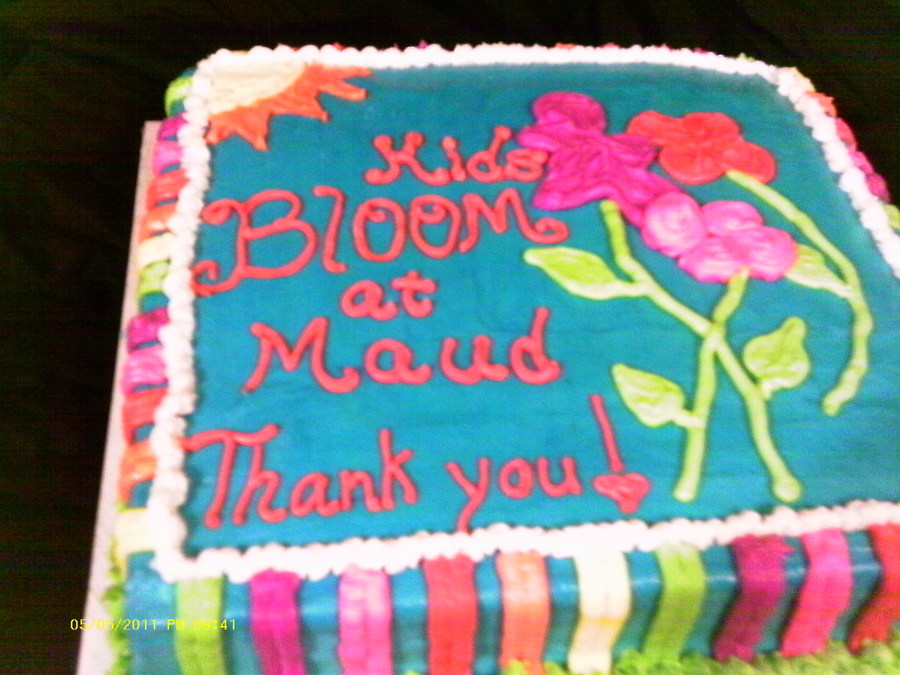 Cake was done for the teachers at work...I had a bag break while piping a flower and I also forgot the smiley faces...lol...thanks to atkin600 for your post...TFL