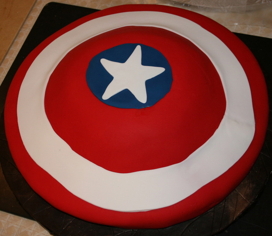 Vanilla cake shaped like Captain America's shield. Was base for cake but only one other cake survived. It was to be for Austin Cake show but never made it.