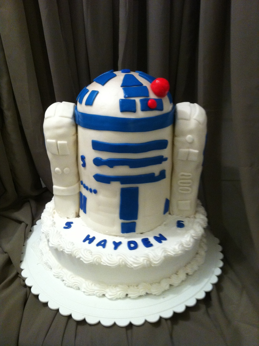 stacked cakes atop a larger base cake, with rice cereal treat "arms". An incredibly easy cake, I discovered. I have made three since this one! LOL
