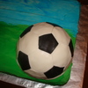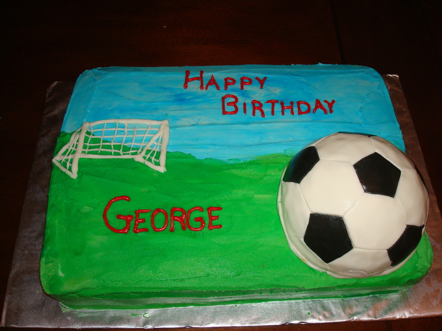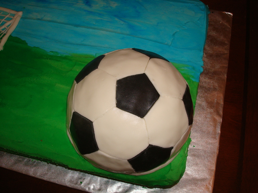 The sheet cake is buttercream and the soccer ball is fondant.