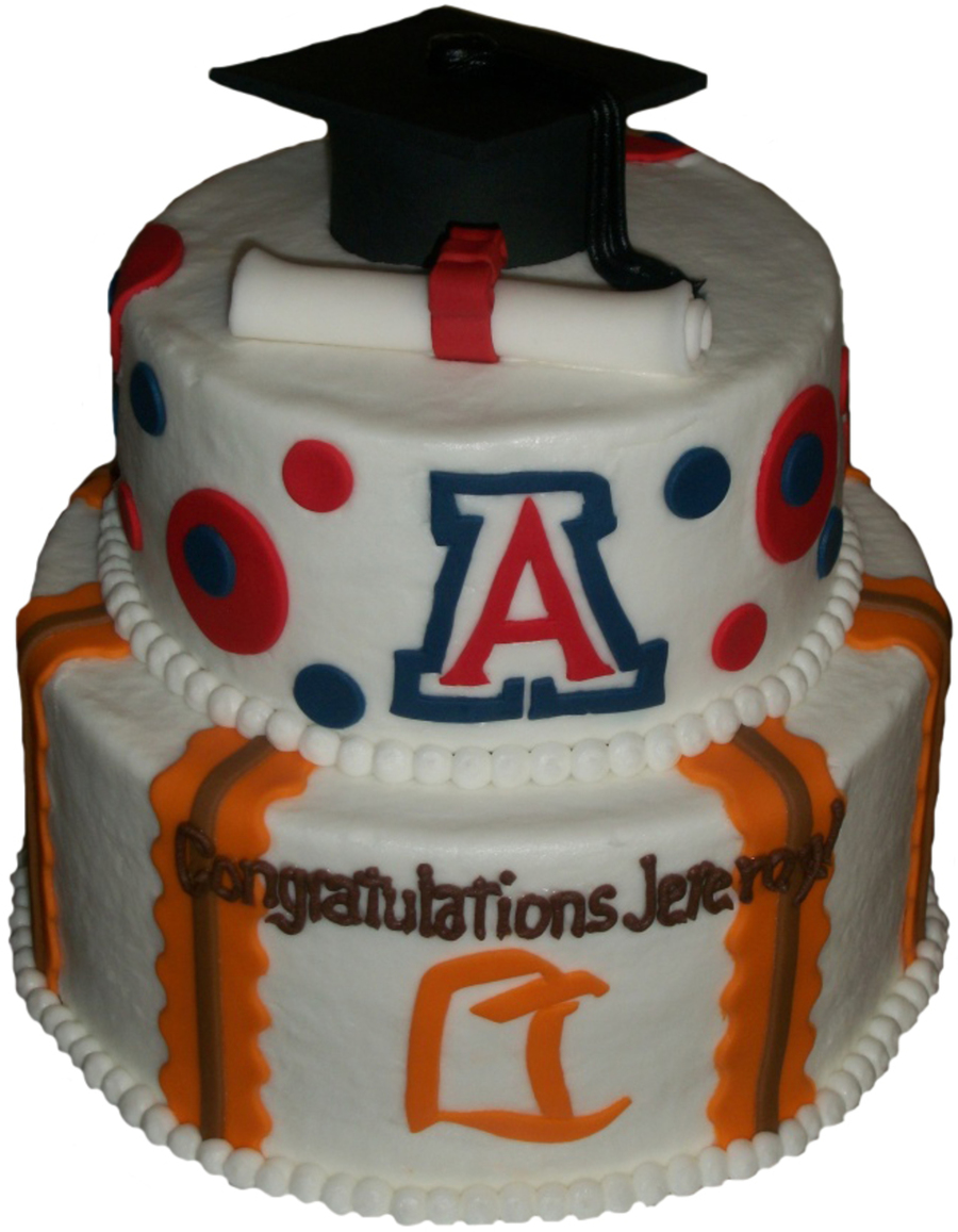 This cake was for someone graduating from Bowling Green and going to work at the University of Arizona. Cake was iced with BC with fondant decorations. TYFL!