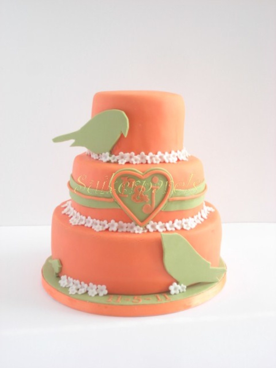 For a couple that specifically did not want a white wedding cake. they wanted a colorful , retro style cake. It?s a chocolate cake with cherry filling.