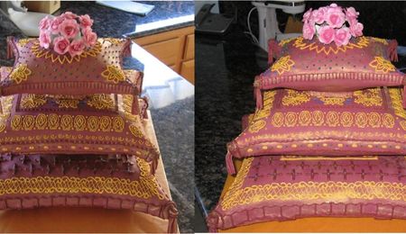 Cake Is A Contest Cake Used Styrofoam For Cake Carved Pillow Shapes Covered With Satin Ice And Dusted With Luster Dust Each Pillow Is