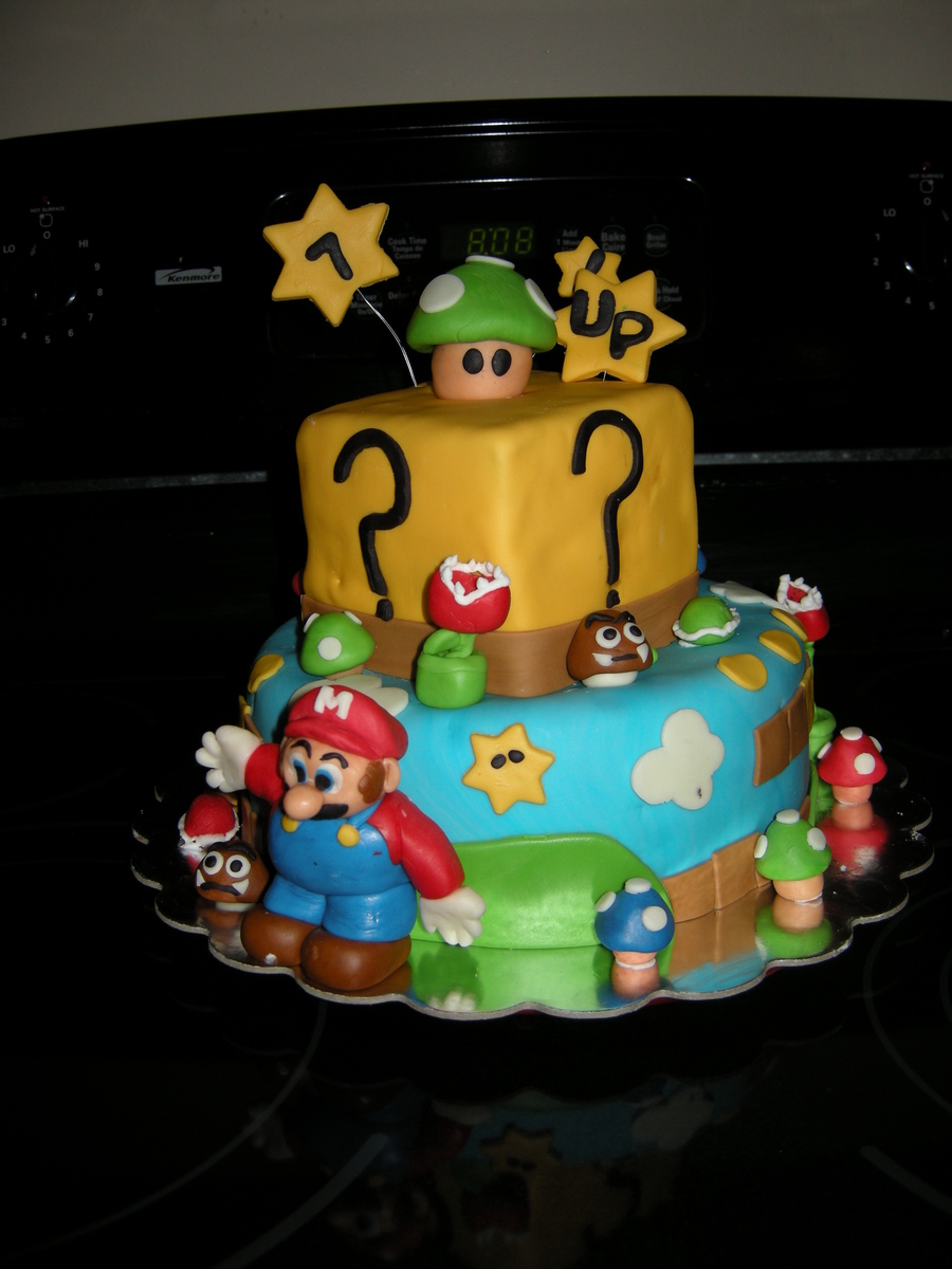 Chocolate 3 tiered cake, covered with buttercrean icing and Marshmallow icing. Figures were made of fondant as well.