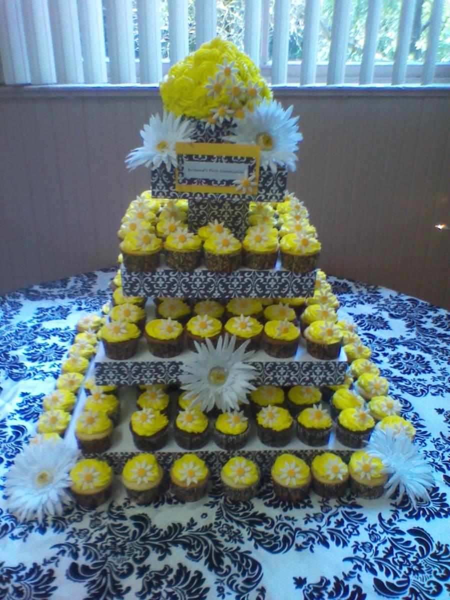 This was a stand I made for a First Communion. Made the stand from styrofoam squares and all cupcakes were bc w/gumpaste daisies.