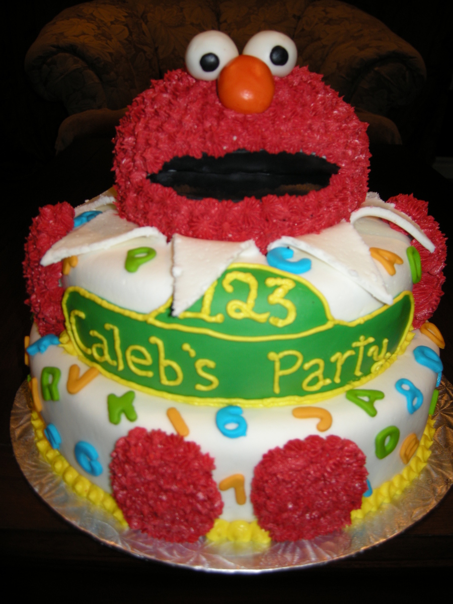 All edible chocolate cake. 3 tiers. Covered with buttercream and MMF. Head is piped with buttercream.