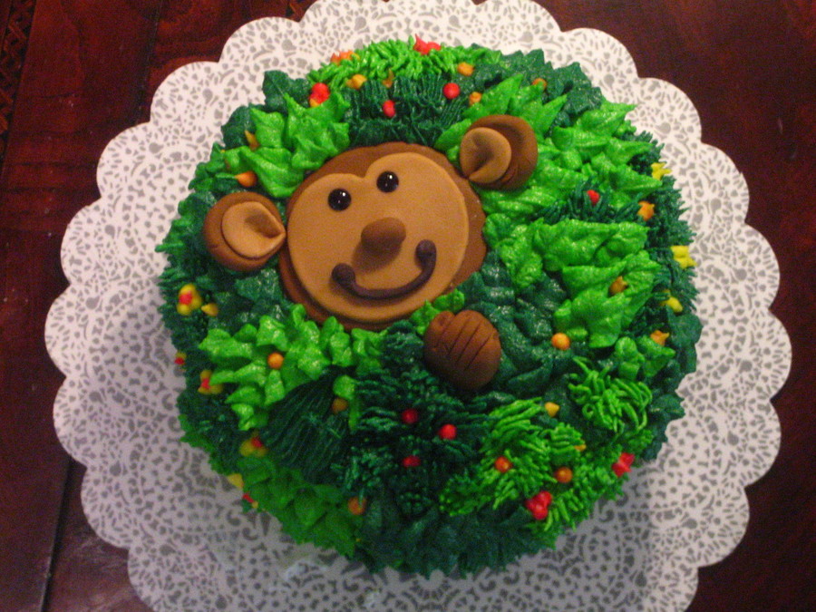 This was a smash cake for a one year old. I usually work with fondant, but the buttercream works best for "smashing". Monkey is fondant.