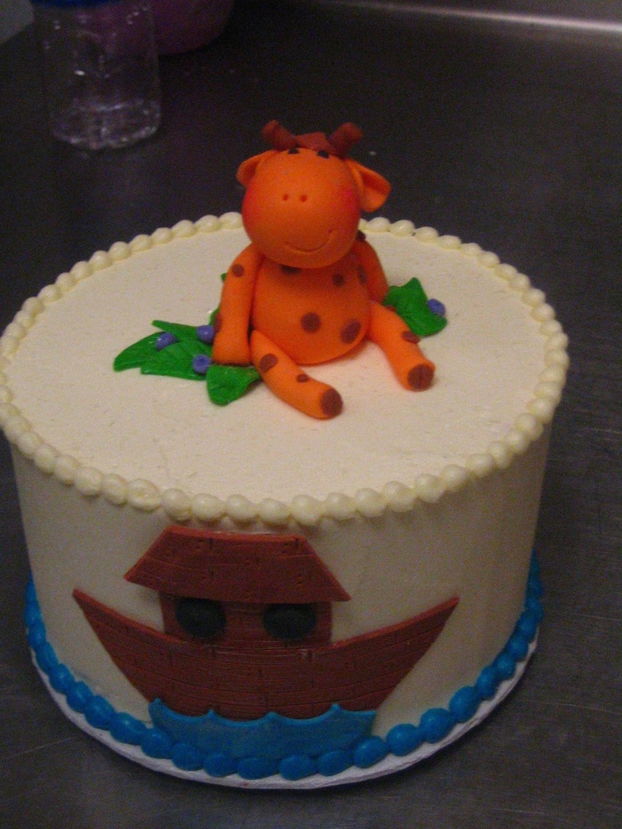 This was the topper for a very simple, elegant, Noah's Ark baby shower cake. The figures in the additional photos went on top on cupcakes. The final display was a cupcake tower and sadly was not photographed.