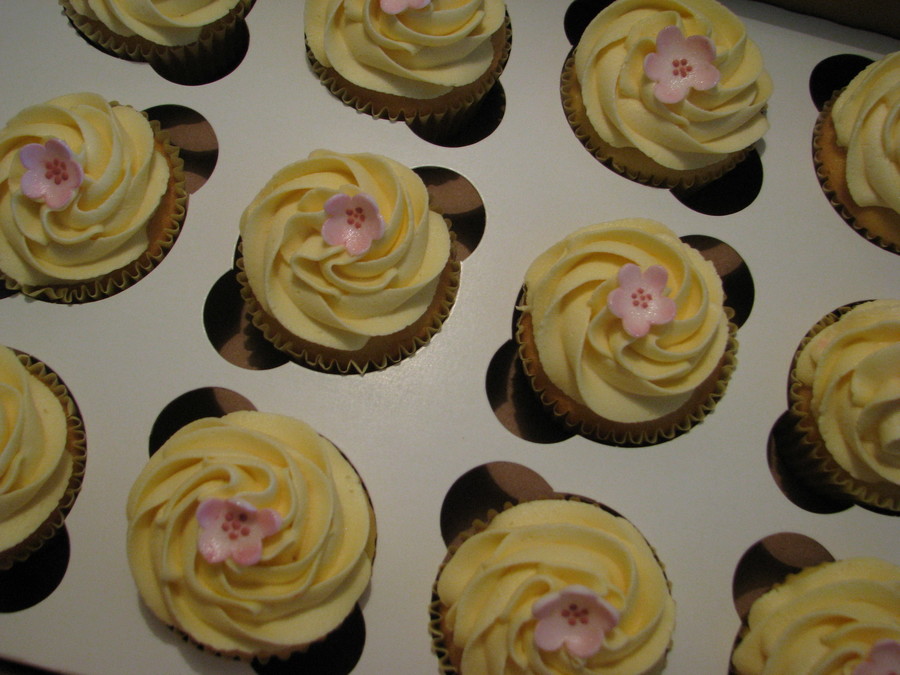 Leftover lemon buttercream so made lemon cupcakes....leftover cherry blossoms from wedding cake!!! ha!