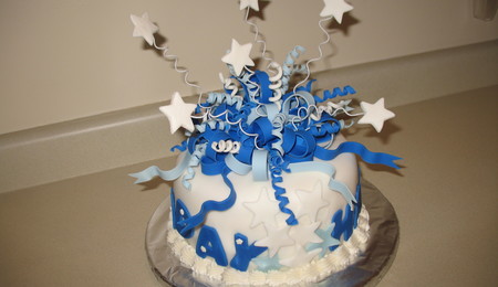 Made this cake for a janitor's retirement party. The cake is a triple layer coconut/vanilla white cake with coconut buttercream filling. Everything on the cake is lovingly handmade with fondant.