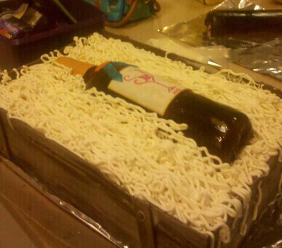 Bottle made of gumpaste. Next time, I will make the packing around the bottle a something different.