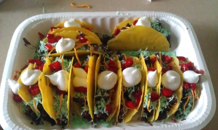 I got this idea from all of you, the only thing done really differnt was that my "tomato" was chopped strawberries mixed in clear gel to keep them from seeping onto other things.