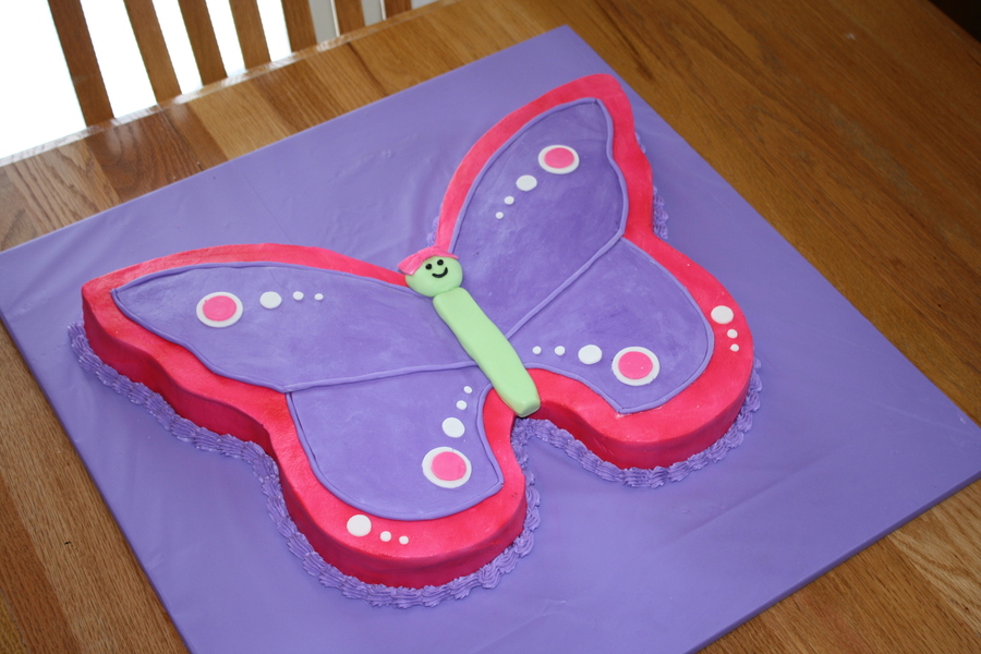 This a a butterfly birthday cake for my 5-year-old daughter. The purple part of the wings and the body are MMF the rest is buttercream.