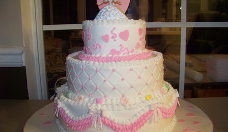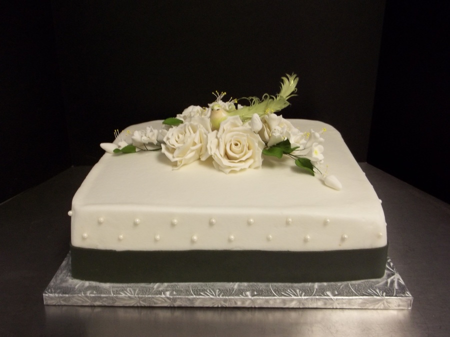 12in square cake Yellow cake buttercream icing pearl and gumpaste accents