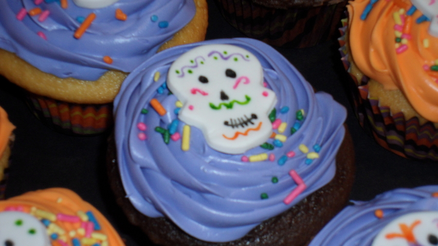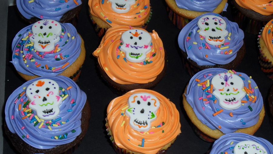 El Dia de los Muertos (aka The Day of the Dead). It is a spanish Holiday similar to Halloween. These cupcakes were for the Spanish Club at my school! Everyone loved them and they represent the color and themes of the holiday!