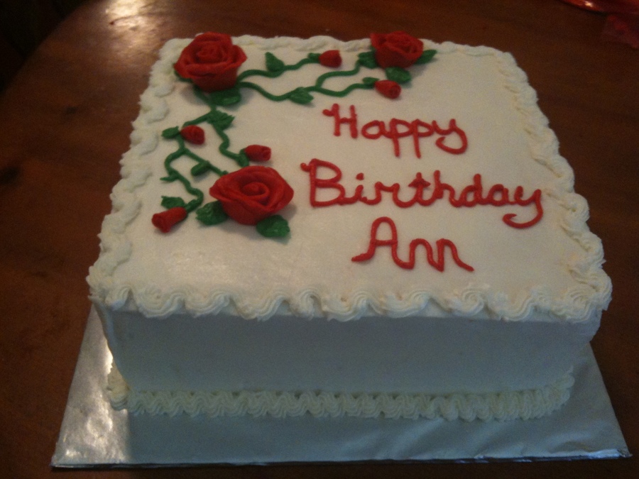 made for a friend's mom who was turning 65. White cake, buttercream, fondant roses.