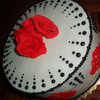 This is a banana/bavarian cream birthday cake I made for a friend. All Buttercream with gumpaste roses.