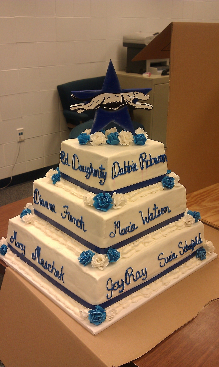 This cake was done for all of the retirees at a school district. Buttercream with gumpaste roses.