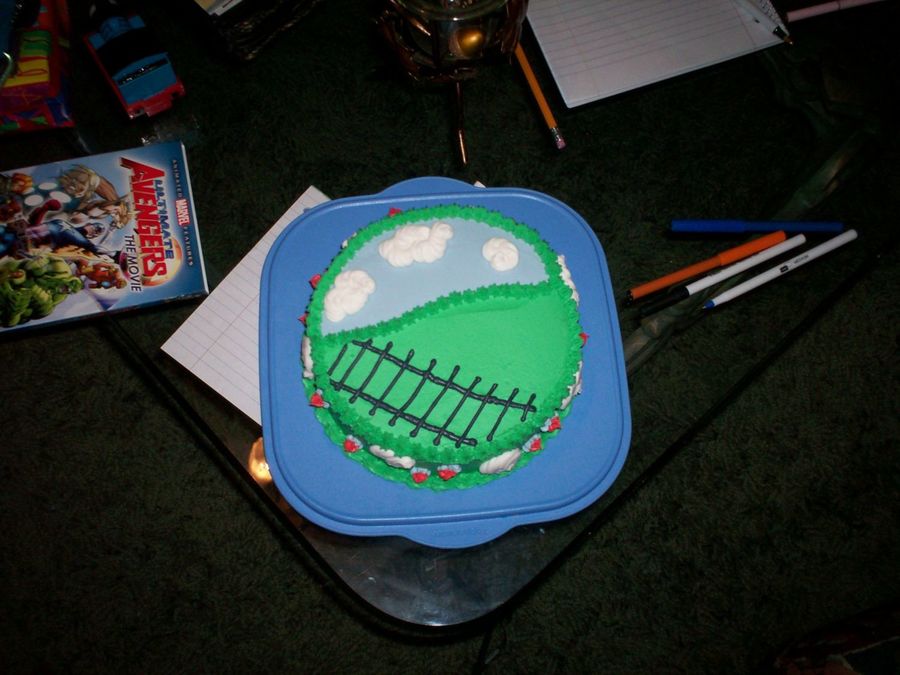 I decorated this cake for a family members birthday. Thomas the train was later added to it.