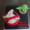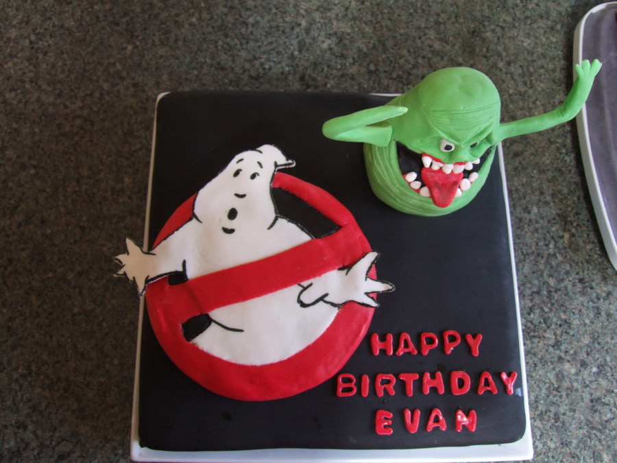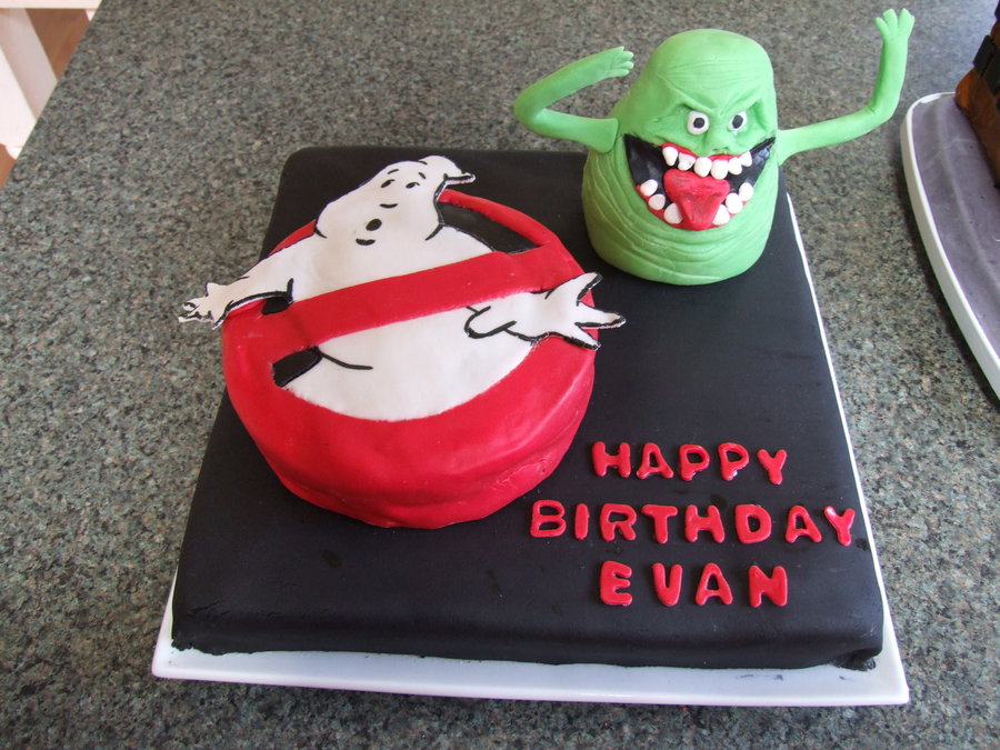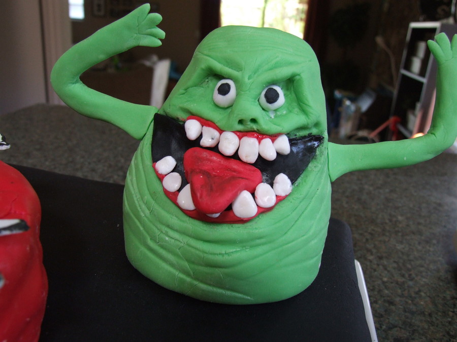 My twins wanted a Ghostbusters party so I made one of them a Marshmallow man cake and the other one a Slimer cake. Slimer is made out of RKT, everything else is cake and fondant.