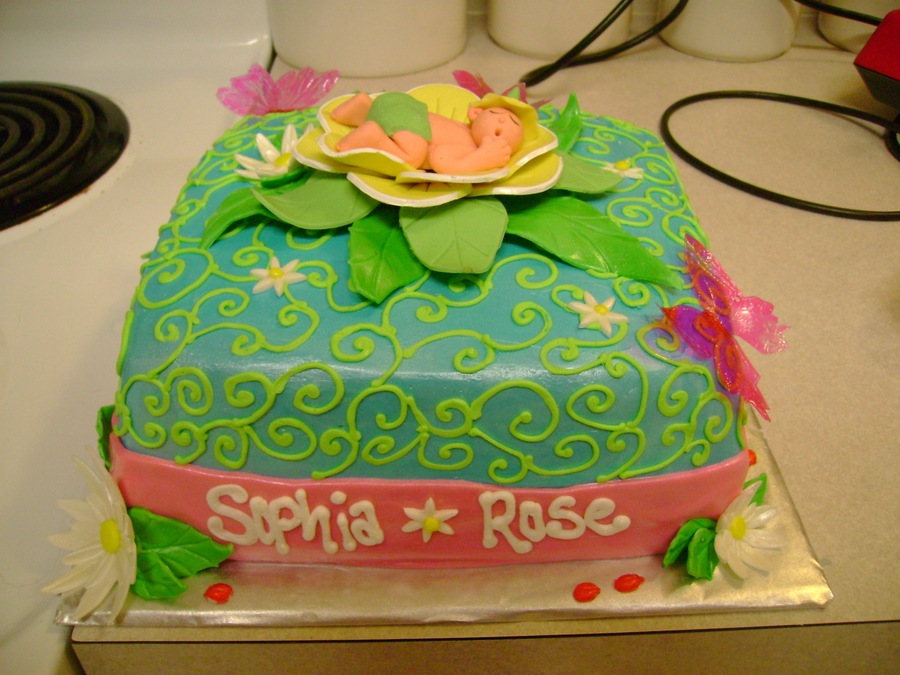 "Swamp" themed baby shower cake with fondent and gelatin accents.