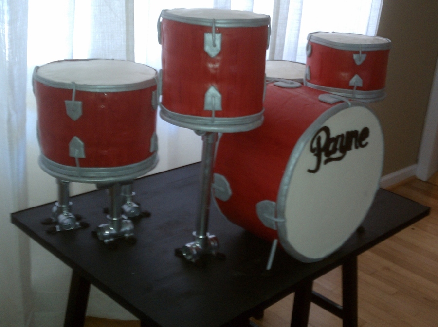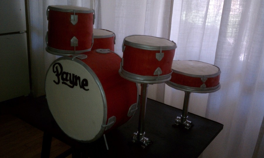 This is a drumset I made for a groom's cake (my husband built the base for me, thankfully!). Besides this, I had 180 cupcakes to make. I have never stood in one place for so long in my life. My calves, heels and lower back are killing me! But it was worth it. I think. Maybe I should appreciate my desk job more... =)