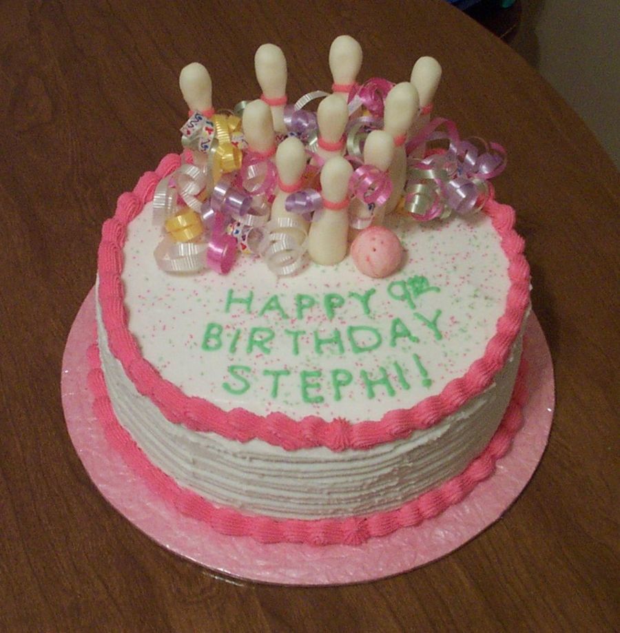 made this cake for my cousins 9th birthday. she was having a bowling party and wanted a bowling cake. of course, cc is the best for getting ideas! :) i found several pics and sent them to my aunt and my cousin picked the cake that karrotcurl made - thanks for the inspiration! instead of using molded chocolate, i used chocolate clay for the bowling pins and ball. this cake was so much fun to do!!! :) :) :)