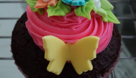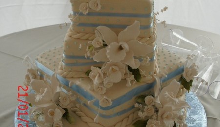 butter cake, fondant and gumpaste flowers & bow.