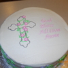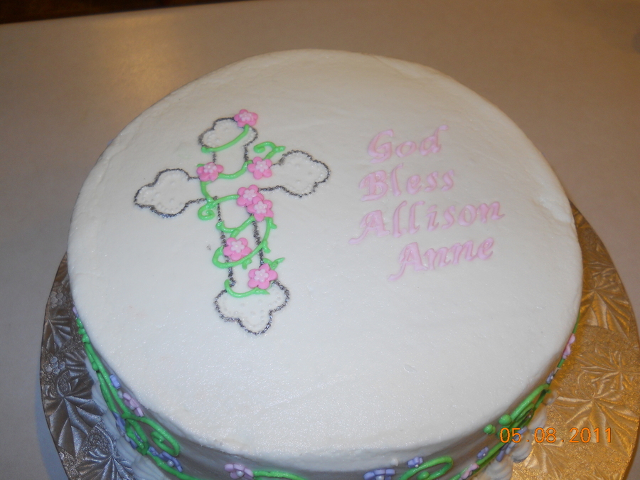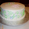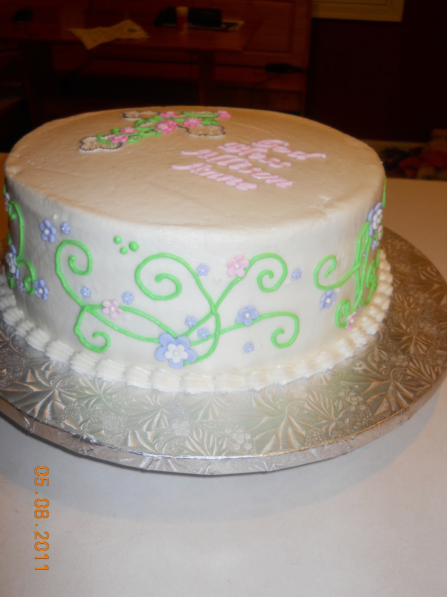 10" cake with buttercream. Used FMM cutters for lettering. Flowers are fondant with candy pearl centers.