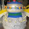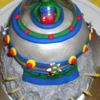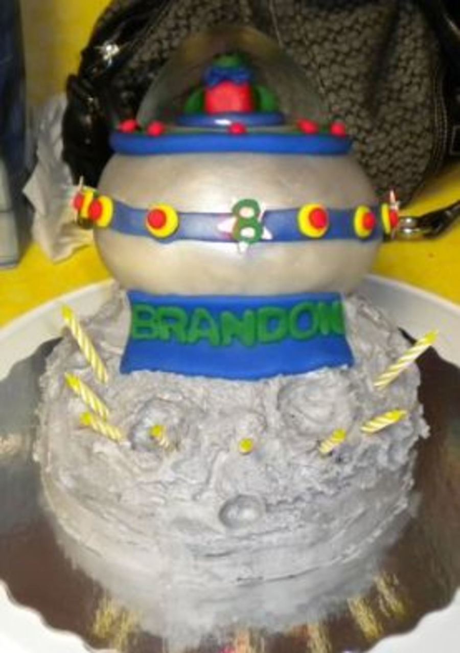 My 8 yr old son wanted a spaceship with an alien landing on the moon cake. :)